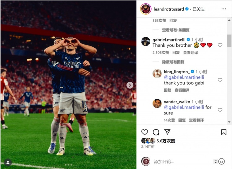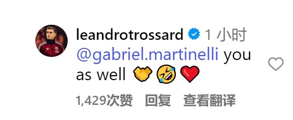 互相助功 !马丁内利和特罗萨德社媒互相致谢
