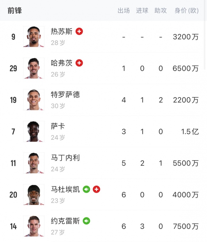 > 萨卡刚复出🤕枪手锋线再伤一人,棍哥休2月+哈弗茨热苏斯还没好