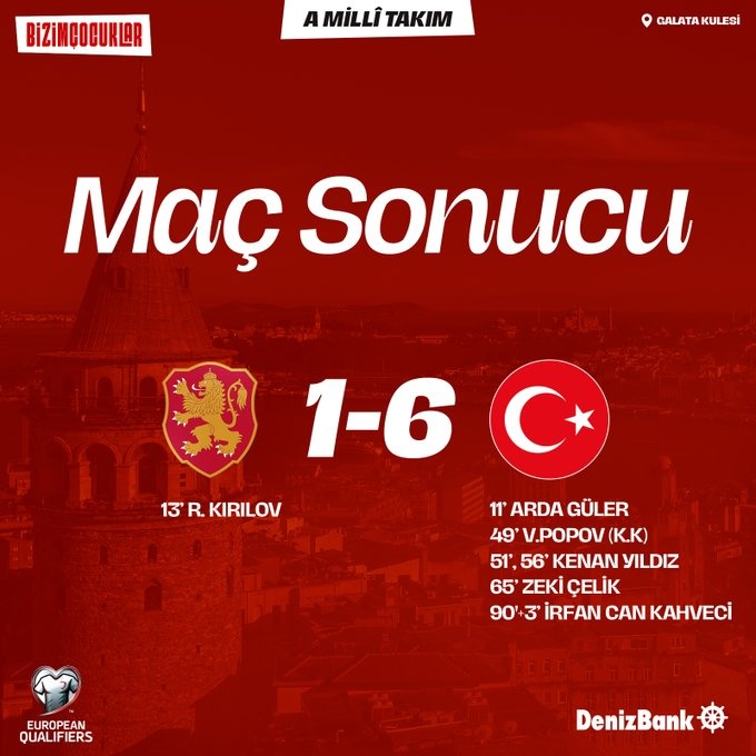 世预赛-土耳其6-1大胜保加利亚,伊尔迪兹连进两球、居莱尔传射