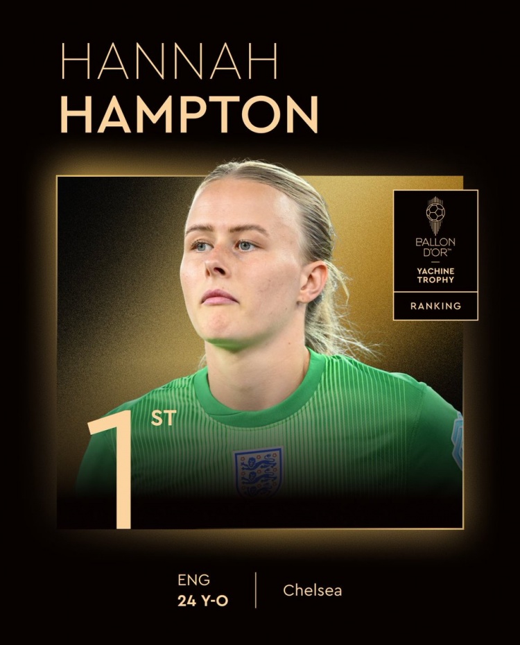 官方消息,切尔西、英格兰女足的汉普顿获得2025年女足雅辛奖。值得一提的是,汉普顿天生患有斜视,从小到大做过多次眼睛手术,她却能克服重重困难夺得女足守门员的最高荣誉。