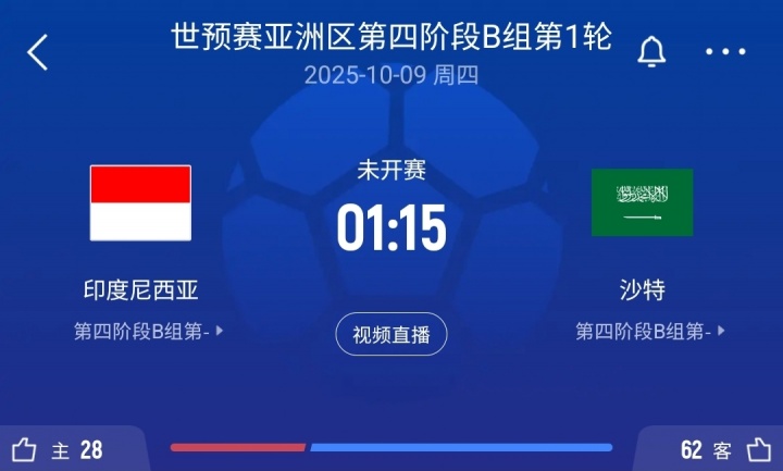 尽管本场赛事 印尼作为名义上的主队,但沙特将承办整个第四阶段B组的赛事 ,小组头名将直接晋级下一轮 世界杯赛 正式比赛。