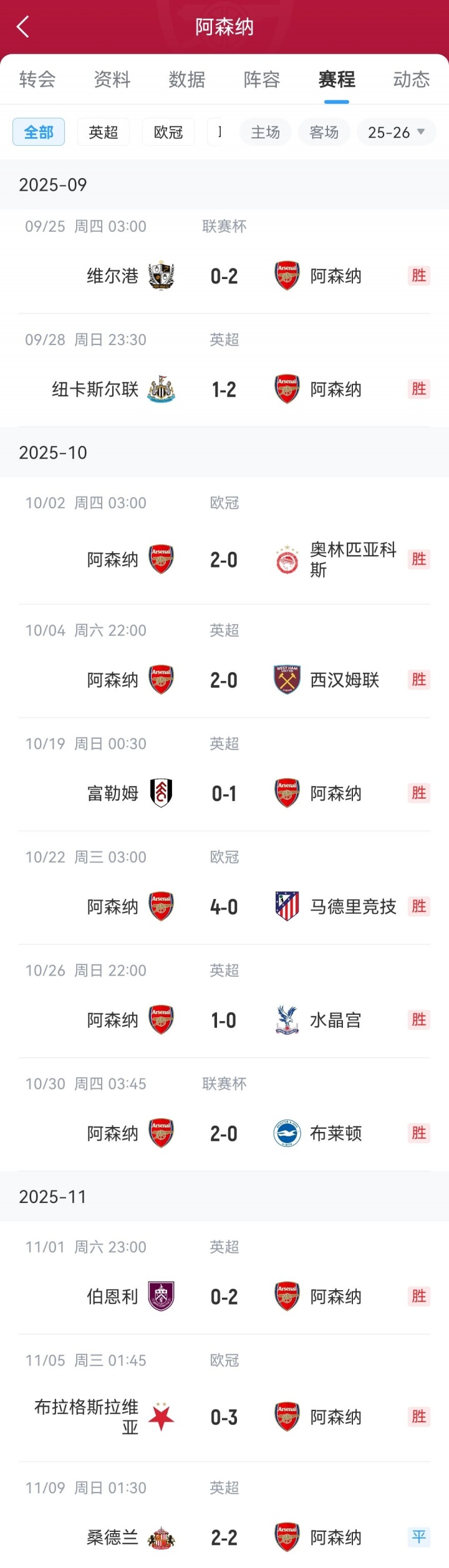 11月09日讯 英超第11轮,阿森纳客场应战 遭桑德兰2-2绝平。至此,枪手9月底至今的各赛事连续10场赛事 获胜+连续8场赛事 零封获胜成绩均遭到终结,无缘刷新英格兰足坛的新记录 。
