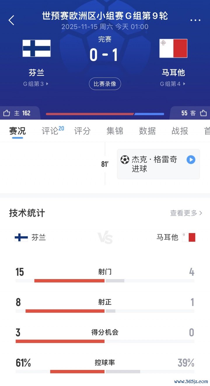 超大冷门!FIFA第166马耳他1-0芬兰,全场1射正取本届世预赛首胜
